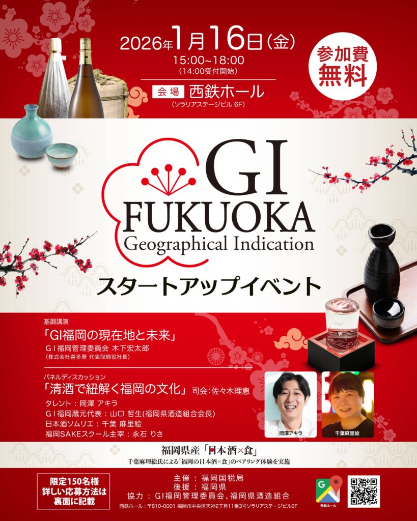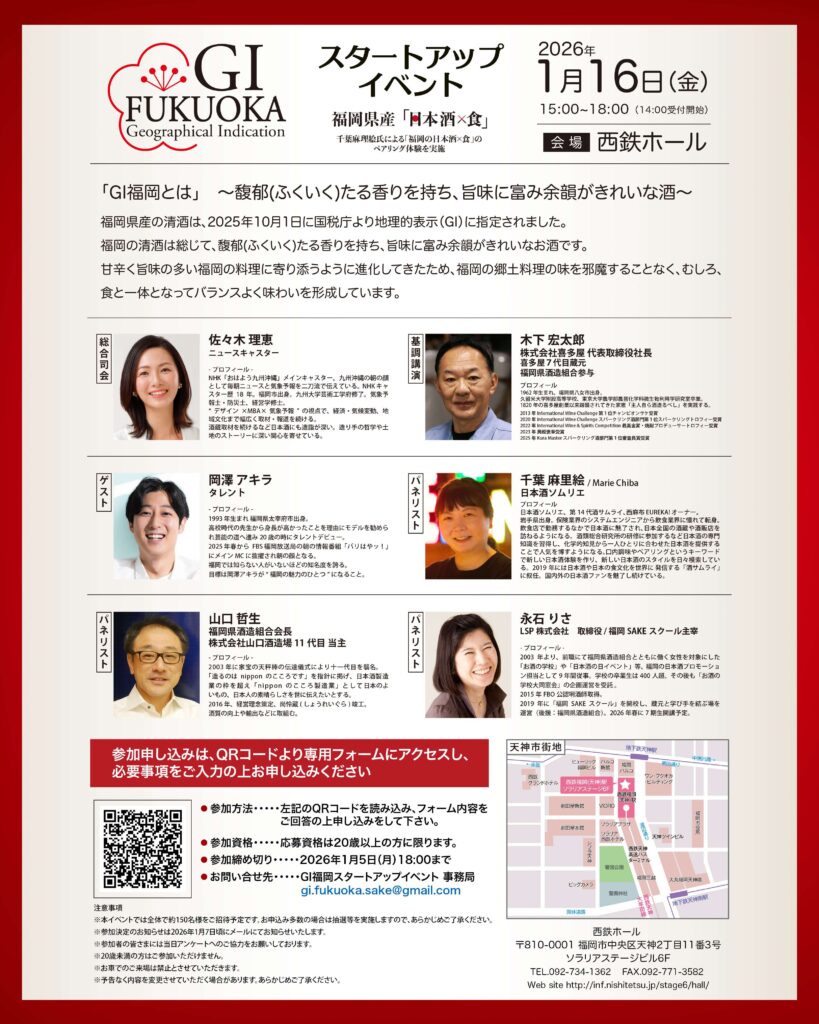 このGI指定を機に、より多くの方に福岡県産の日本酒の魅力を知っていただくために、スタートアップイベントが開催されます。